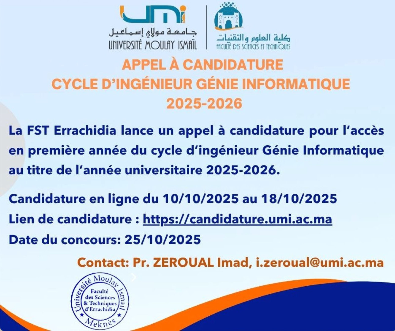 Cycle d’ingénieur Génie Informatique : Appel à candidature
