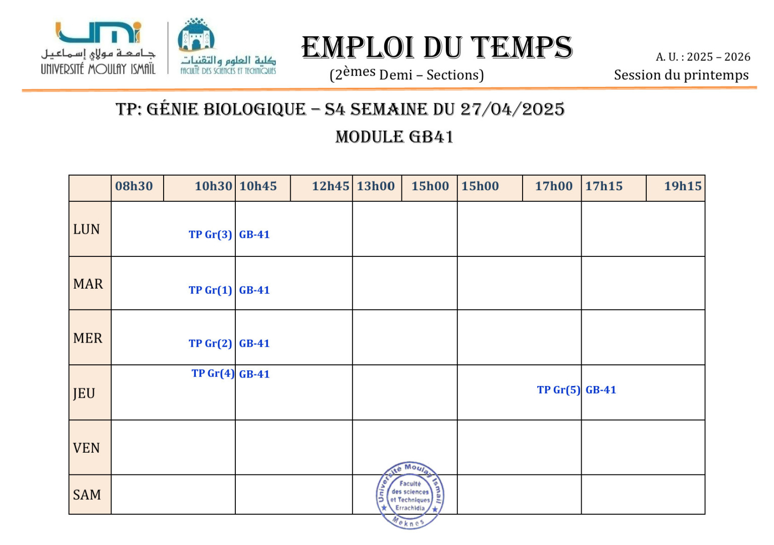 Emplois des TP du module GB-41